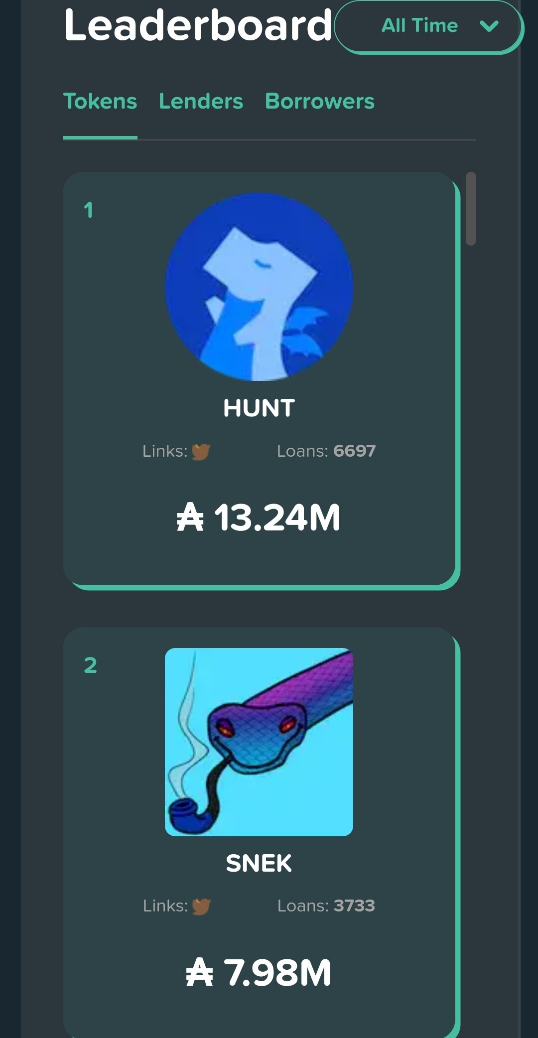 Checking Minswap for most volume it looks like SNEK and FLDT could be added due to volume. Not sure if people will actually supply or borrow these coins. They could be great to borrow towards the end of the bull run as one would expect them to lose the most amount of value in the bear market.