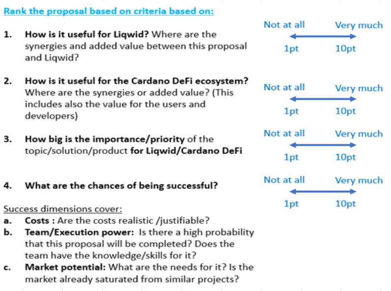 - All reviews, ratings, and reasoning for shortlisted proposals will be documented and made available to the Liqwid community and other stakeholders to ensure transparency.